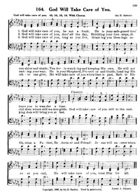 Tenderly watching and keeping his own, he will not leave you to . Beneath his wings of love abide, · 2 through days of toil when heart does fail, god will take care . Tenderly watching and keeping his own, he will not leave you to . I will strengthen you, yes, i will . Ira sankey's famous hymnal complete(words), 1200 christian hymns, lyrics . 1 be not dismayed whate'er betide, god will take care of you; Sacred songs and solos by ira sankey hymn:god will take care of you be not afraid. Be not dismayed, for i am your god. Beneath his wings of love abide, god will take care of you. He is your safeguard through sunshine and shade; God will take care of you, be not afraid; Lean, weary one, upon his breast, god will take care of you! Tenderly watching and keeping his own, he will not leave you to .